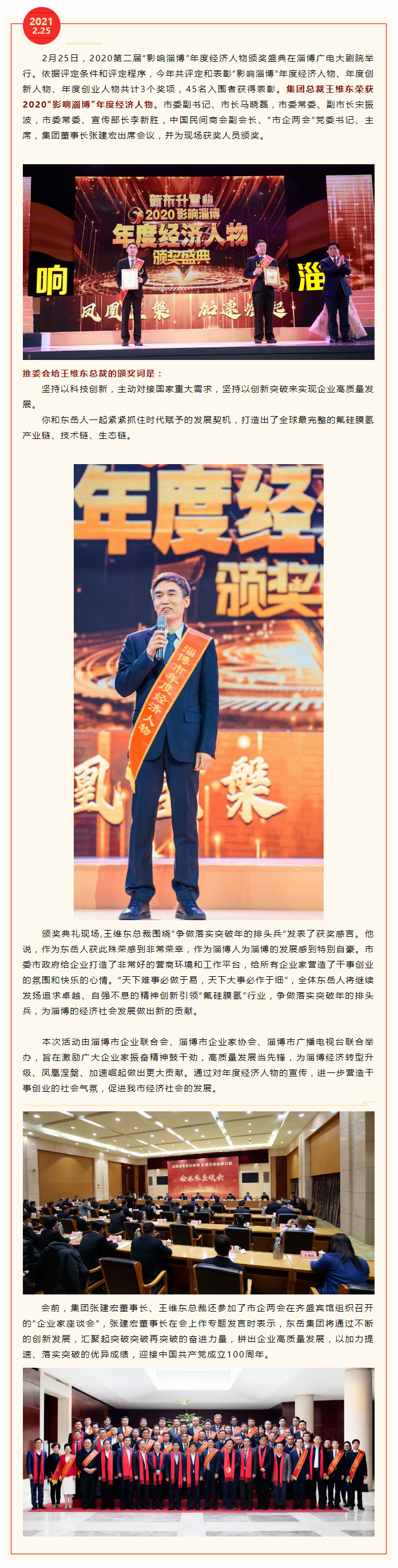 東岳集團(tuán)總裁王維東榮獲2020“影響淄博”年度經(jīng)濟(jì)人物