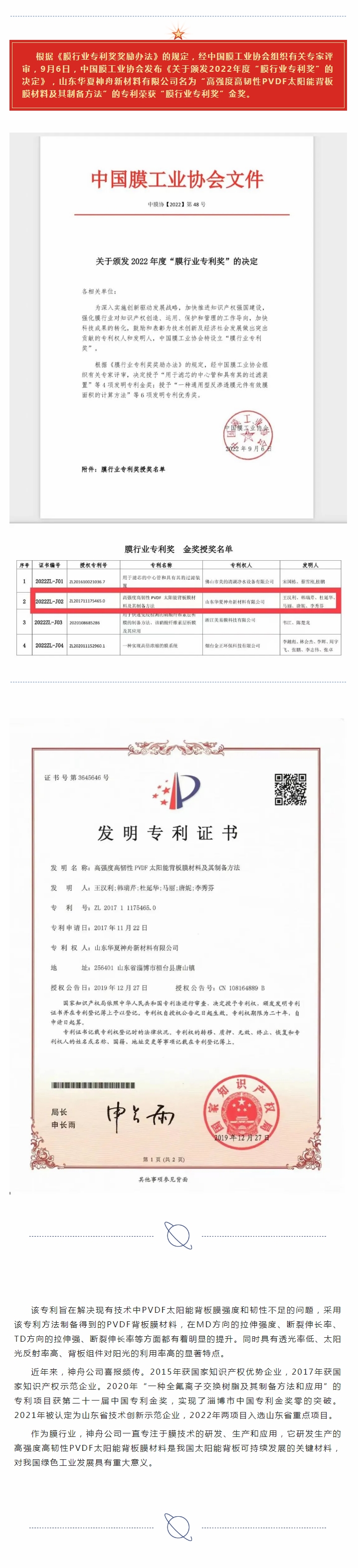 神舟公司榮獲中國膜行業(yè)專利金獎